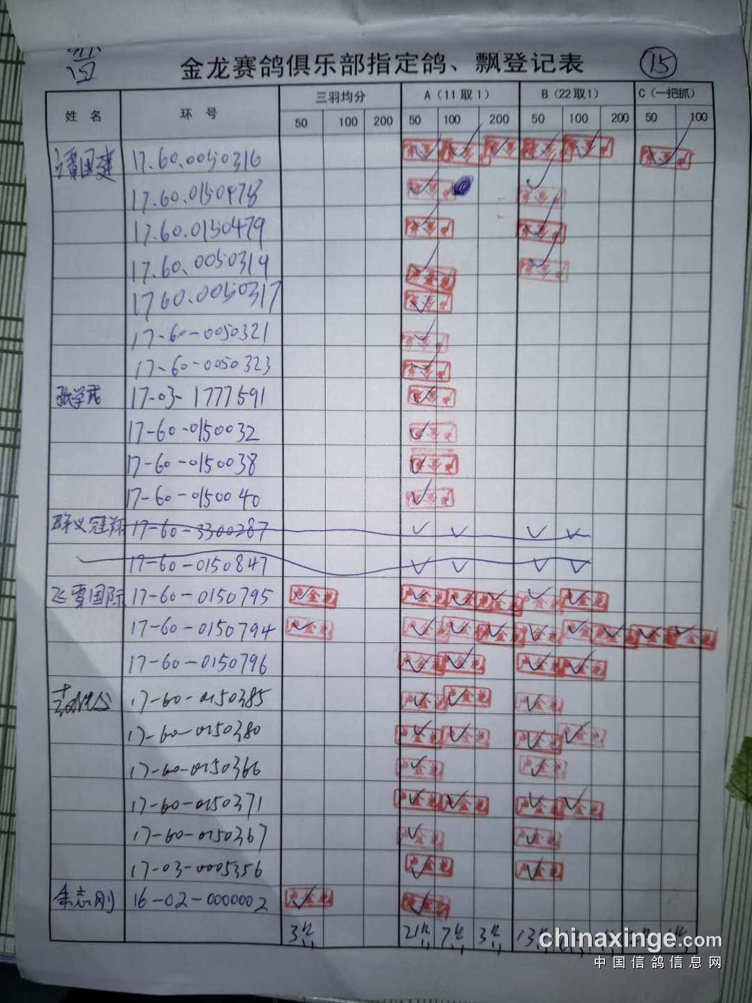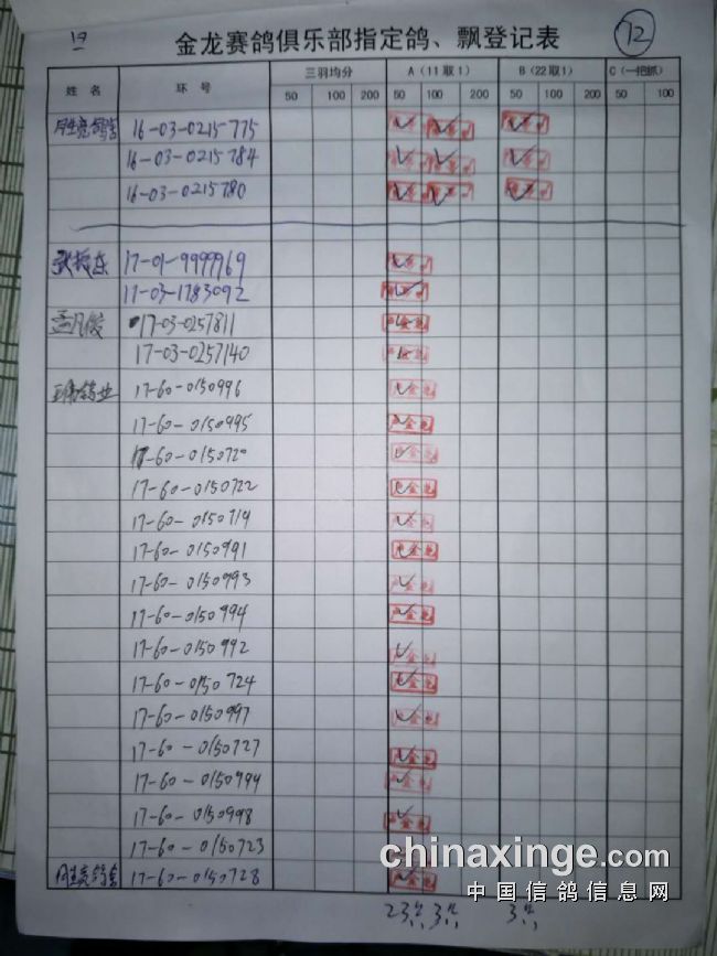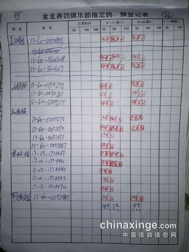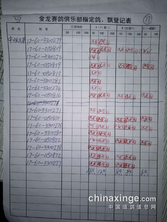 鸽舍赛绩
