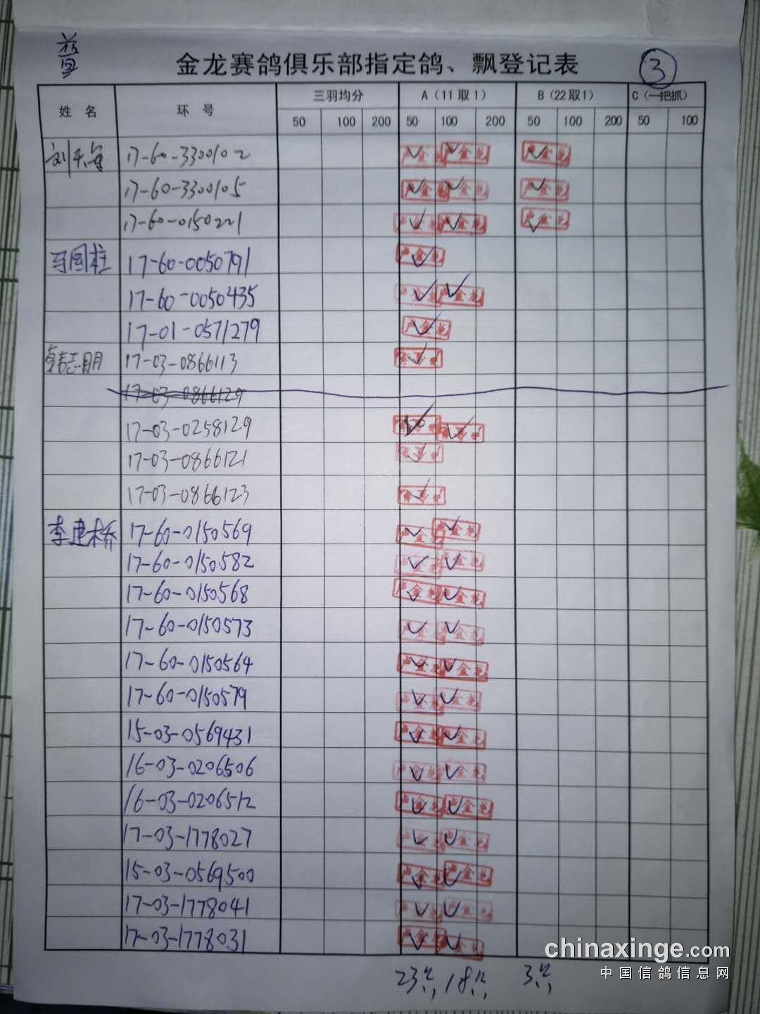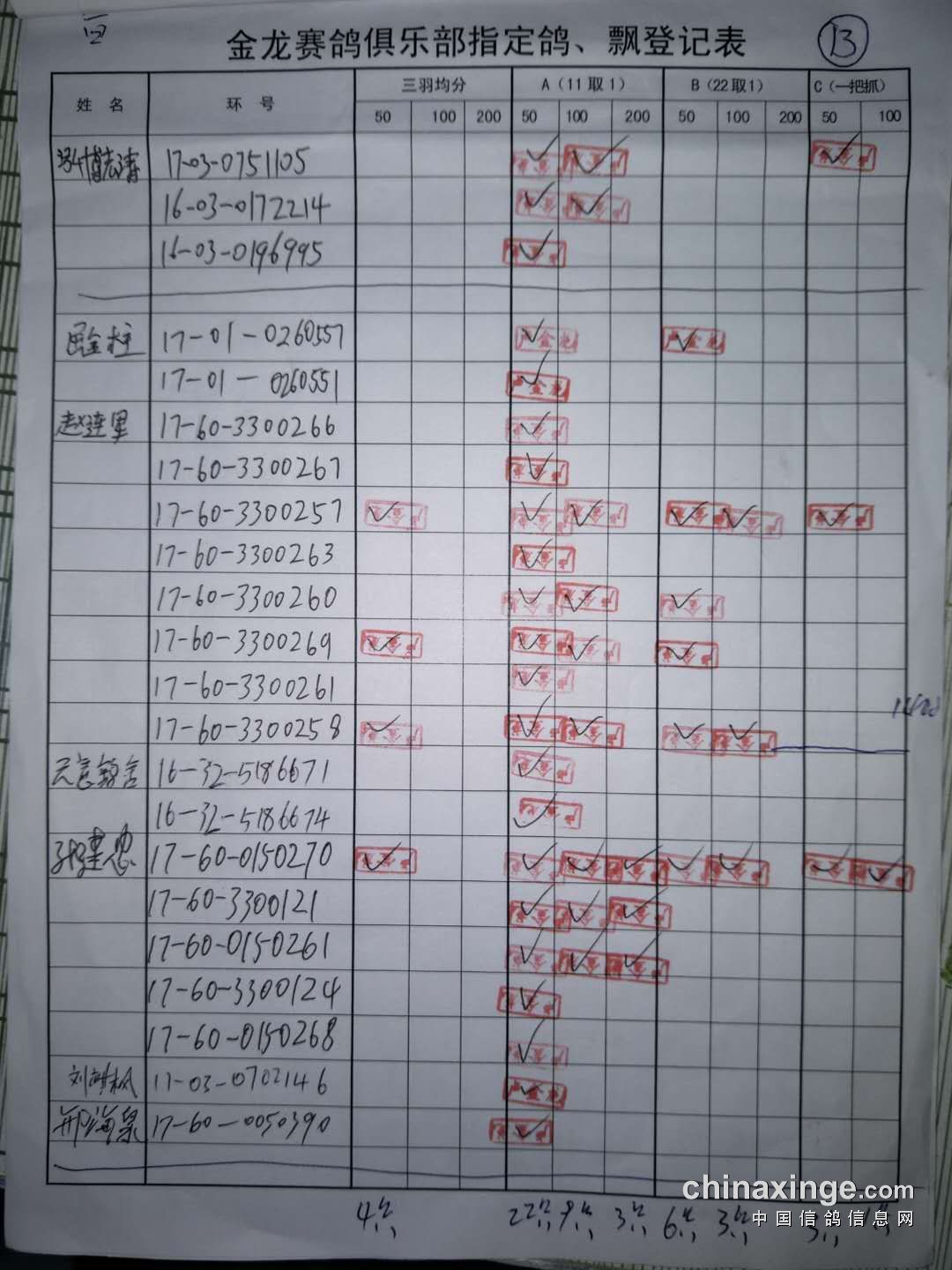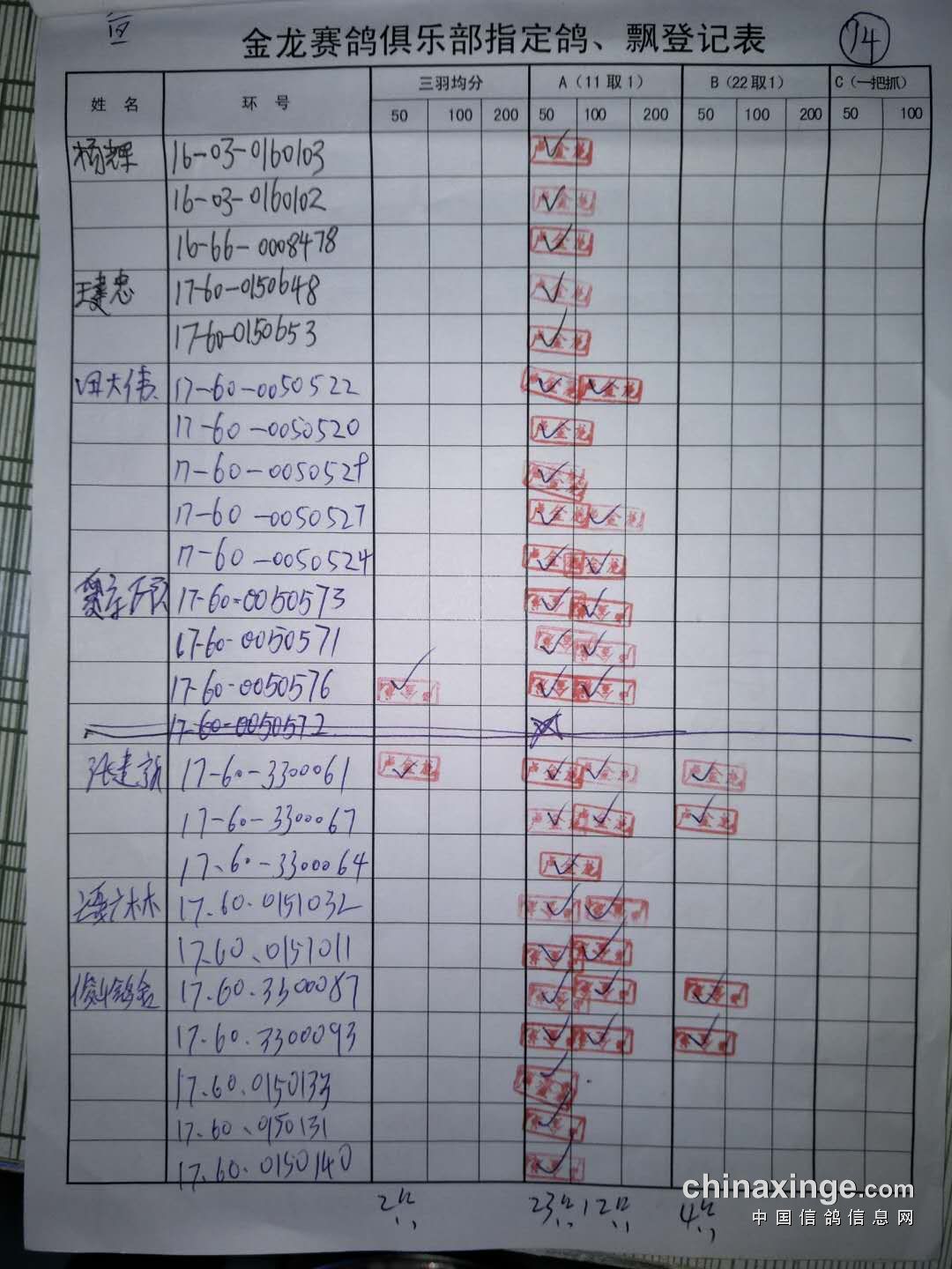 鸽舍赛绩