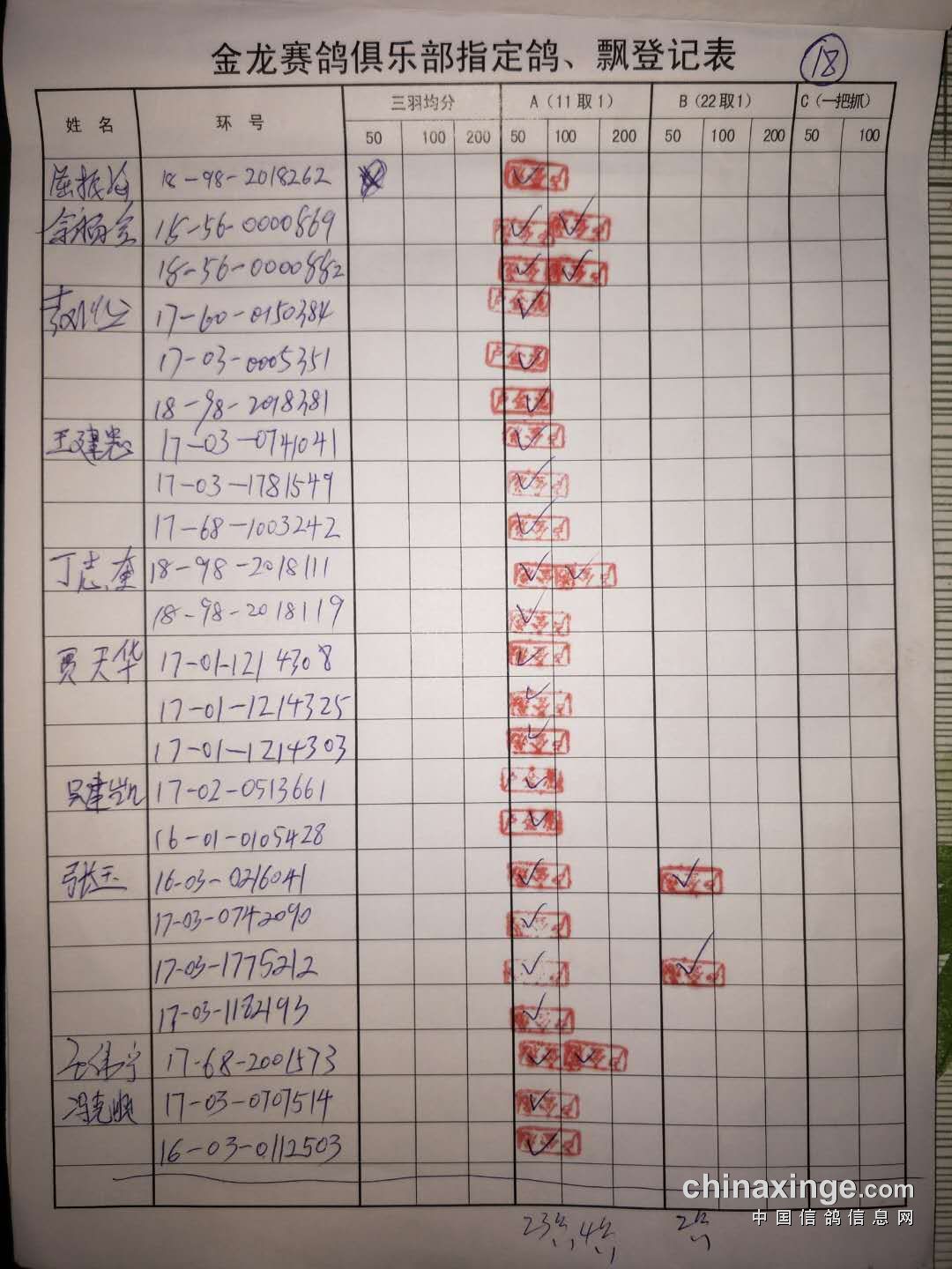 鸽舍赛绩