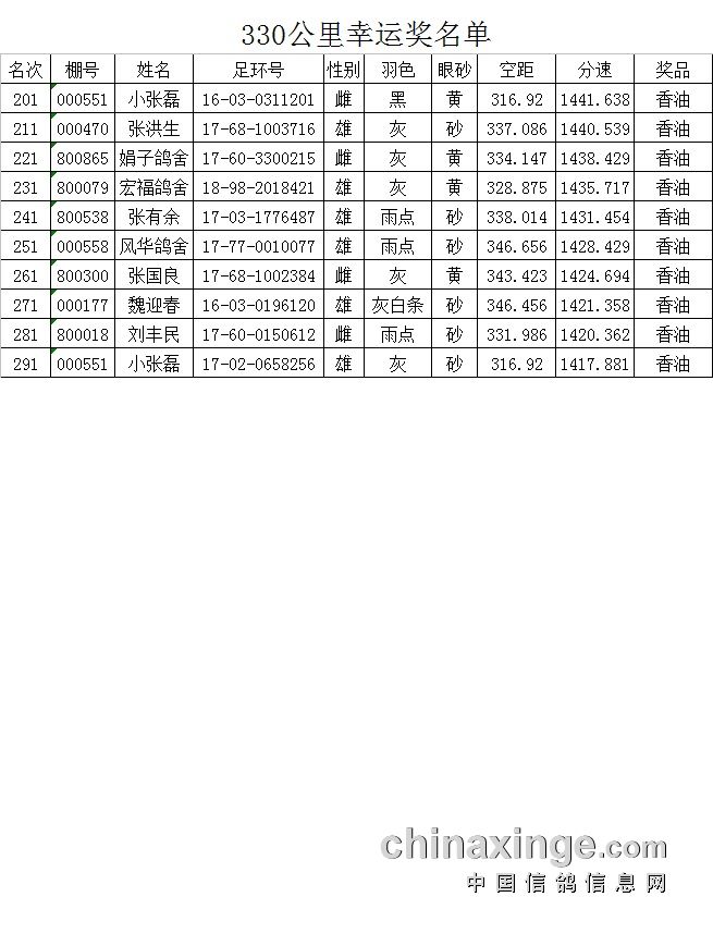 330公里幸运奖名单