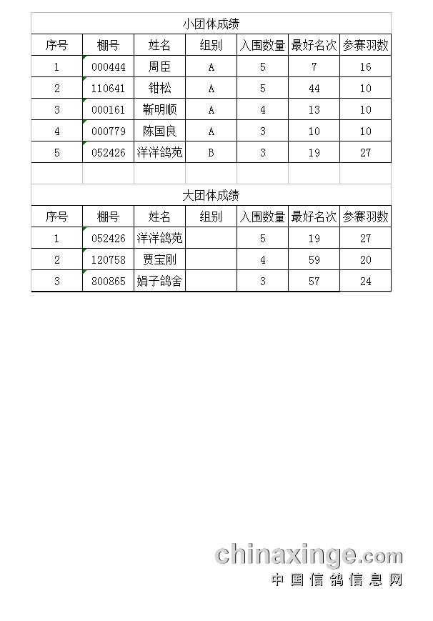 鸽舍赛绩