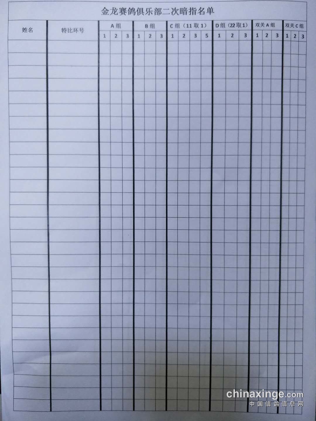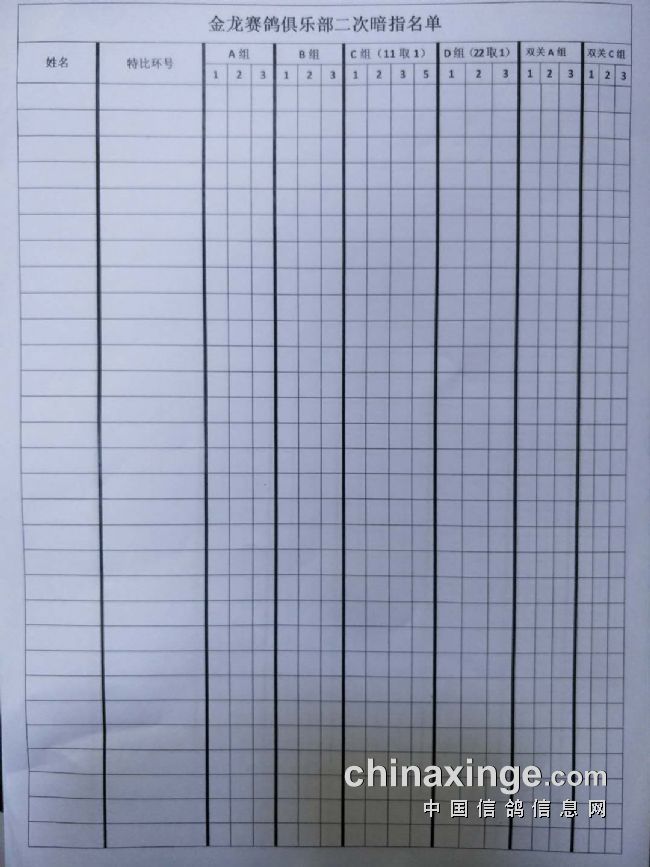 金龙赛鸽俱乐部定于2018年8月11--12日9;00--19;00共计2天对2018秋所有金龙特比环,进行逐羽缴费验鸽存档,所有赛鸽必须参加否则将失去比赛资格!