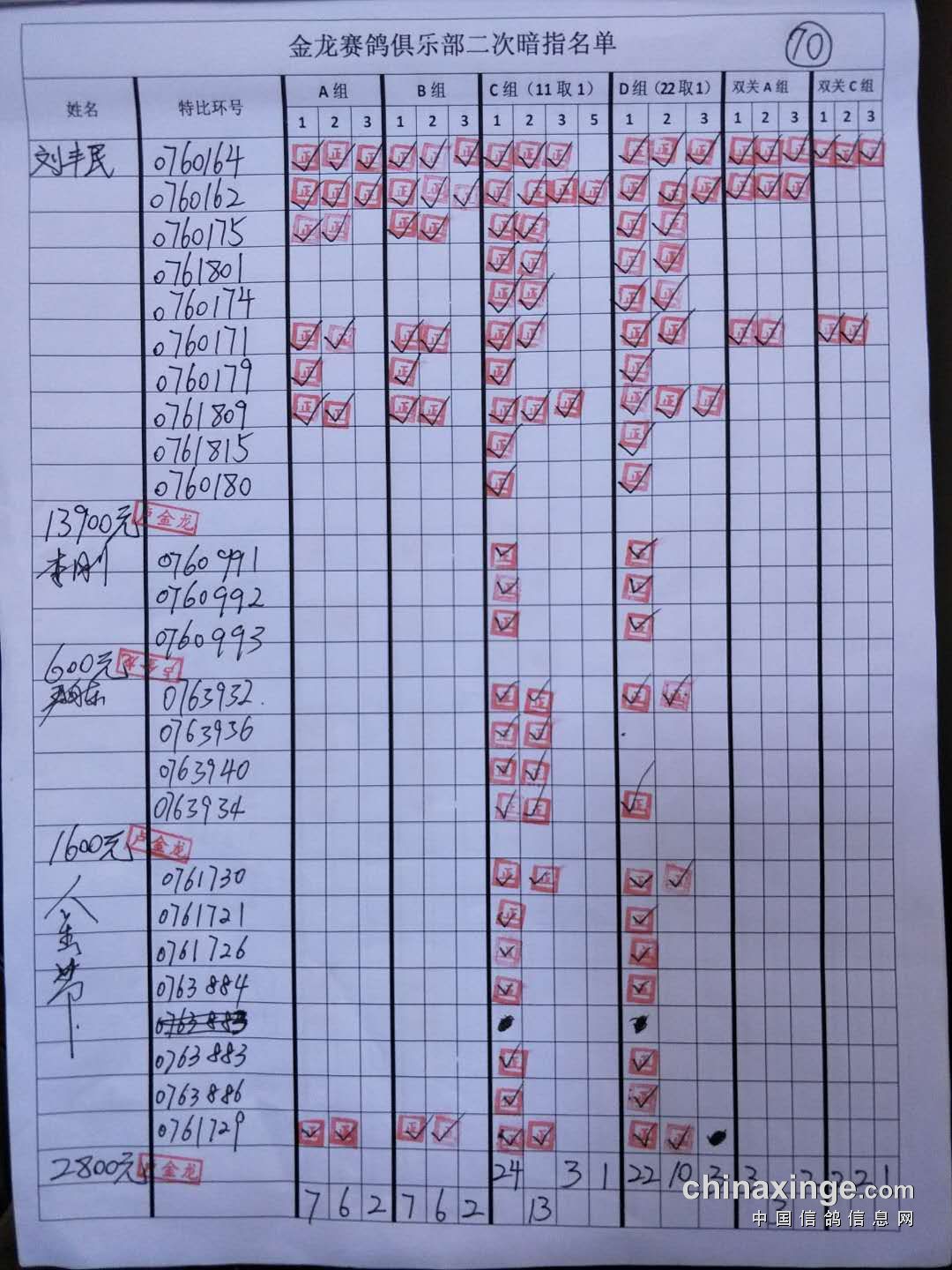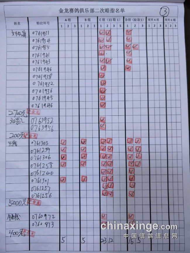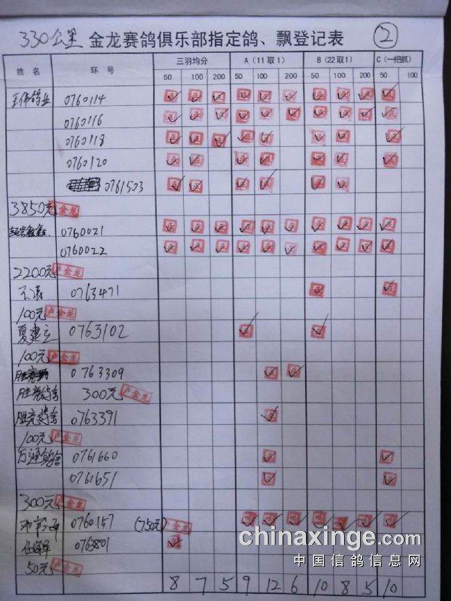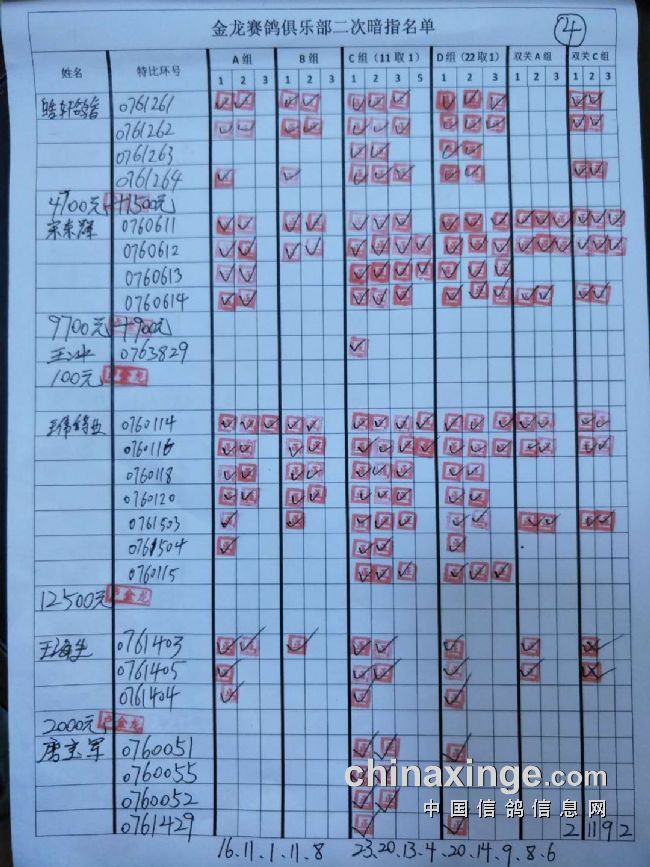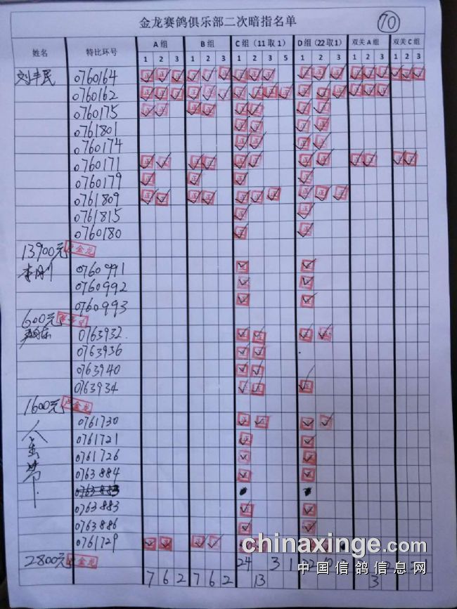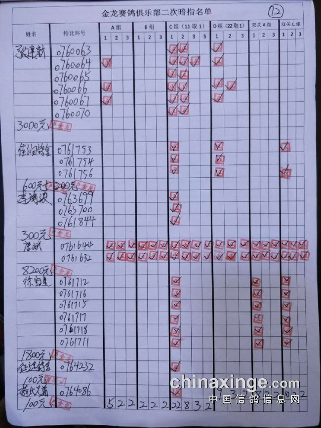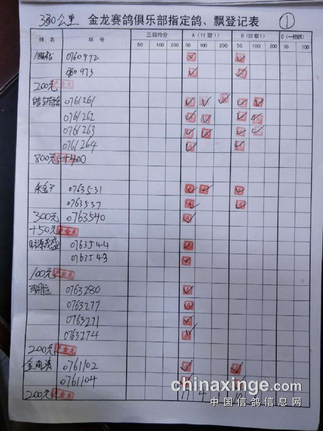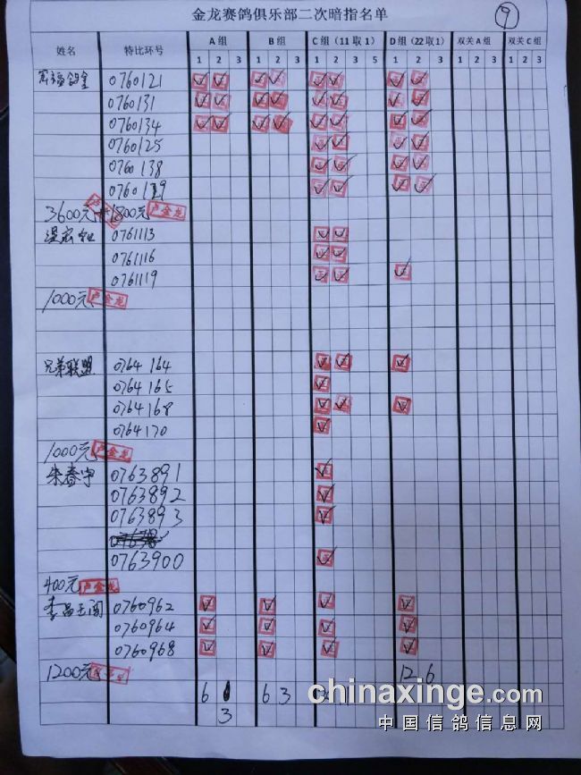 鸽舍赛绩
