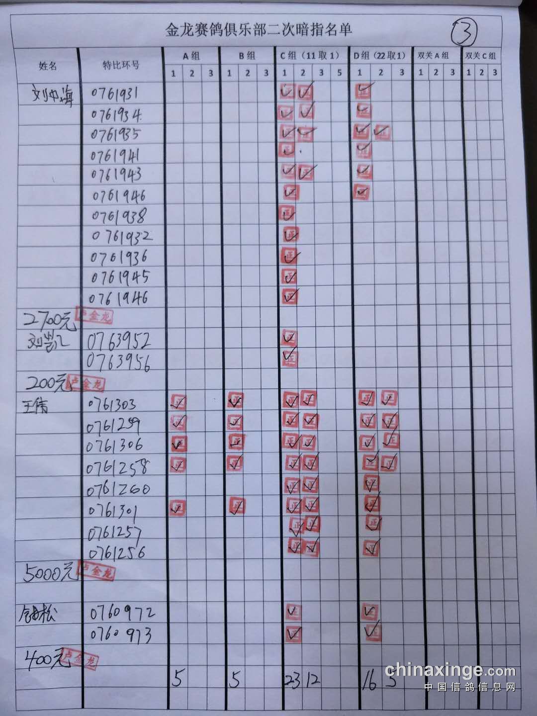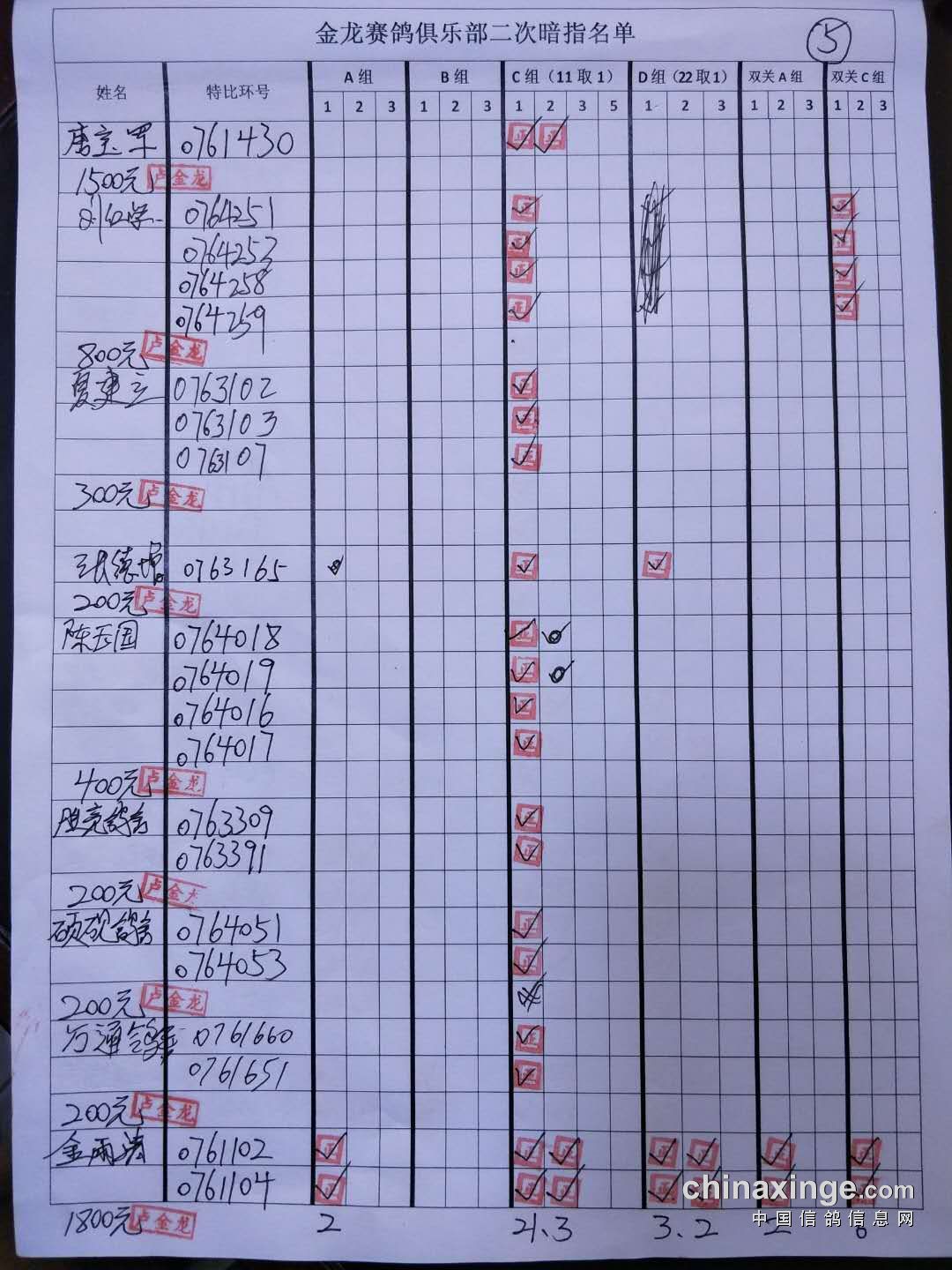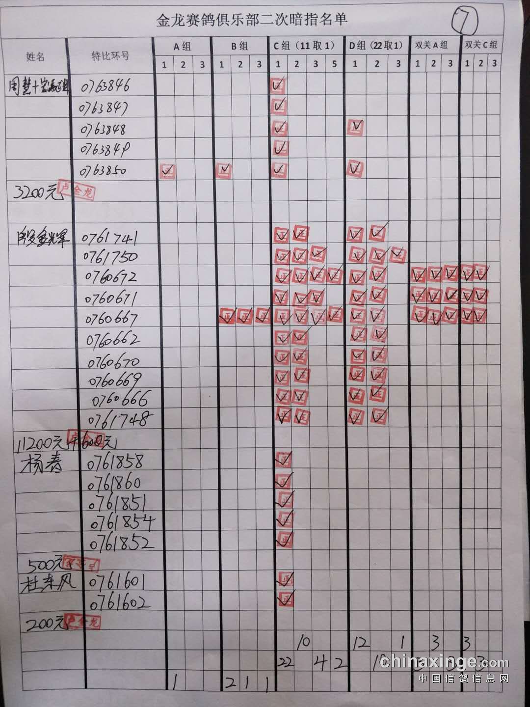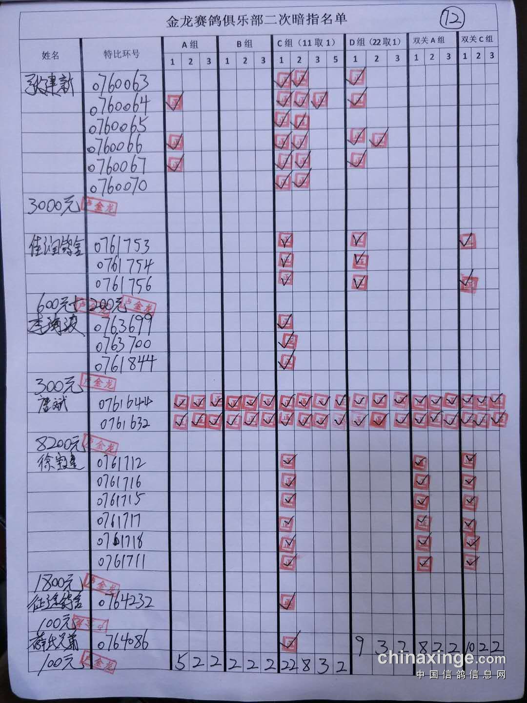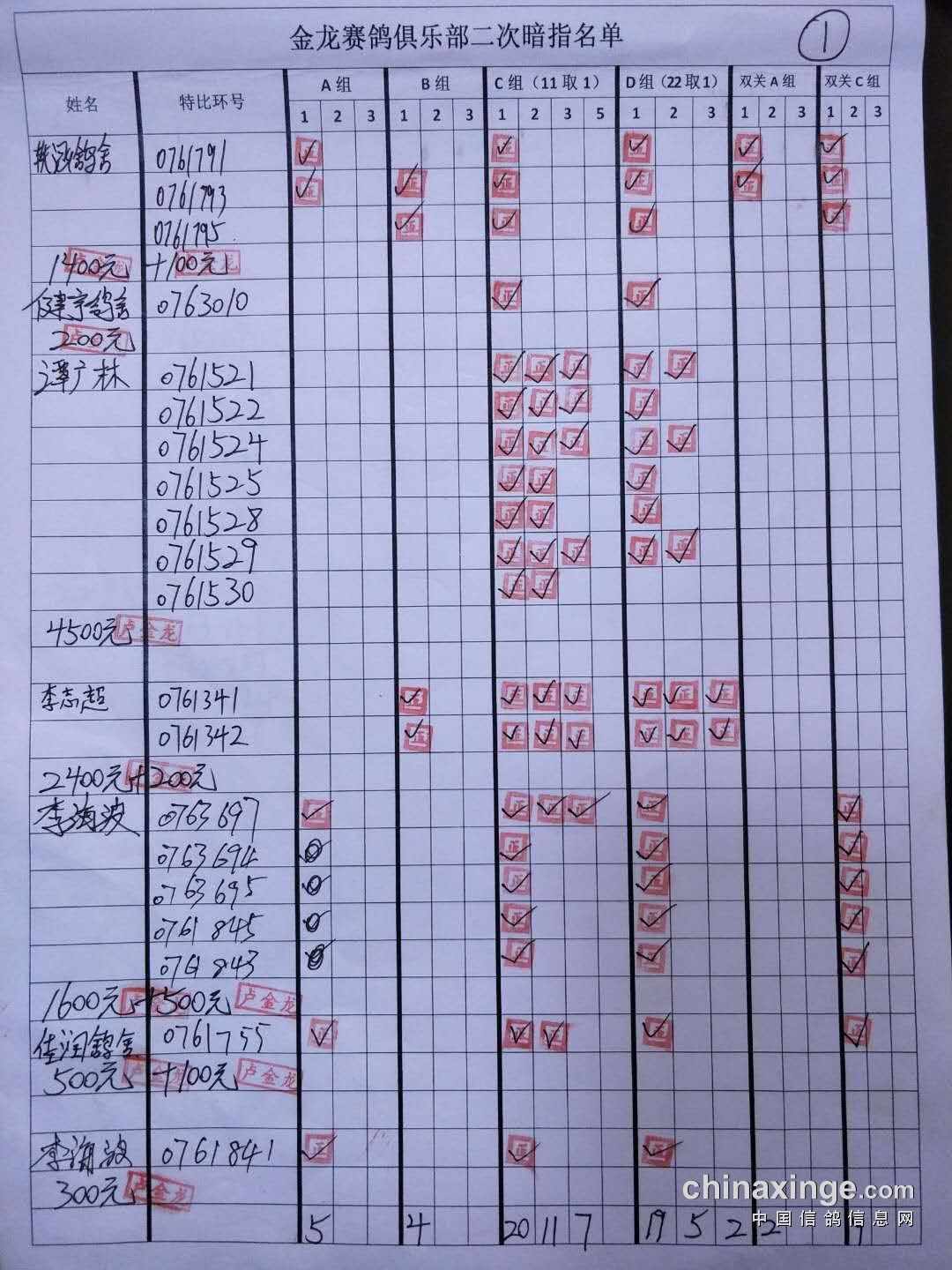 鸽舍赛绩