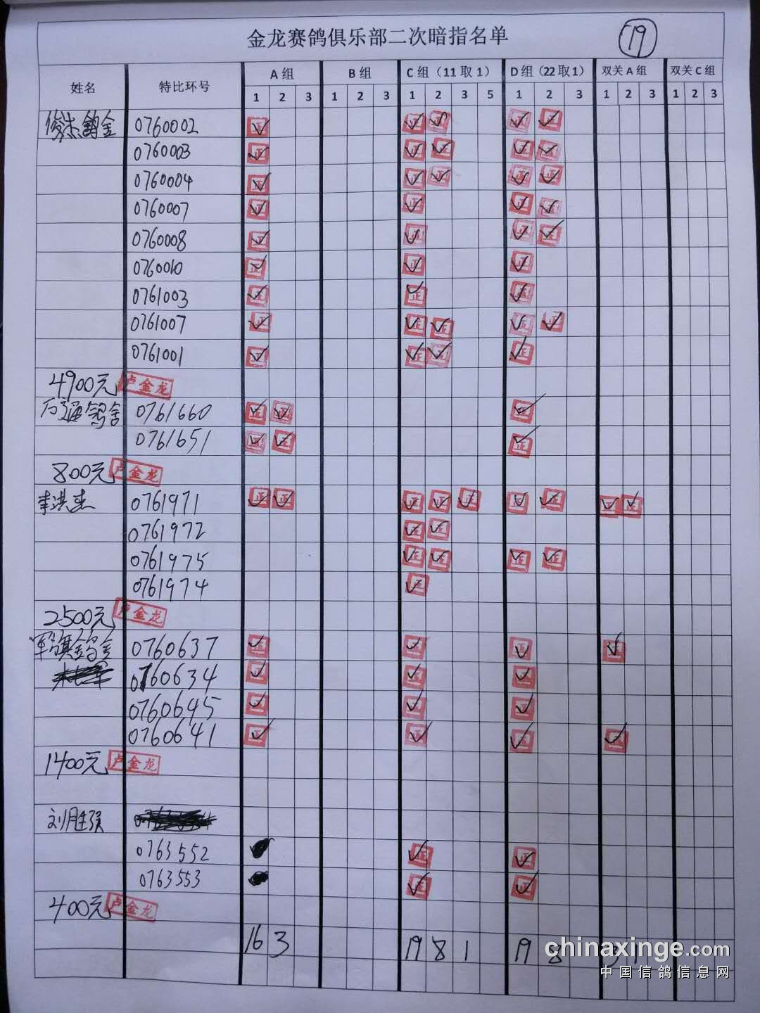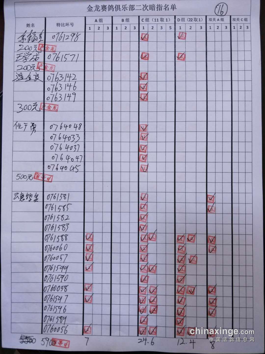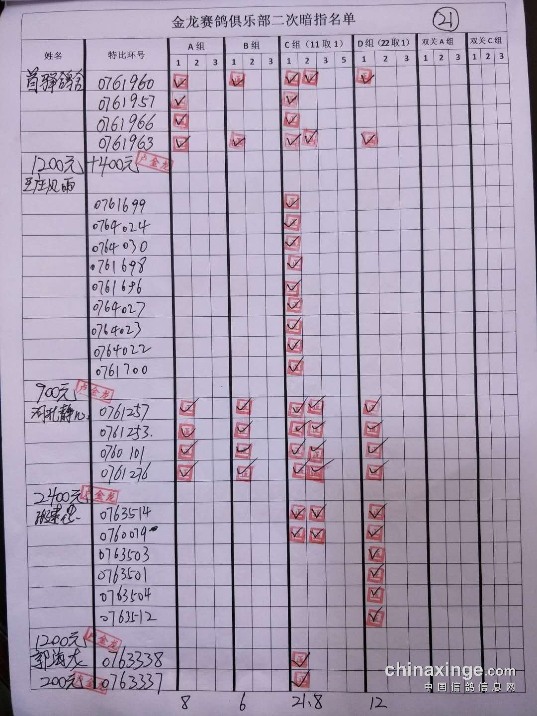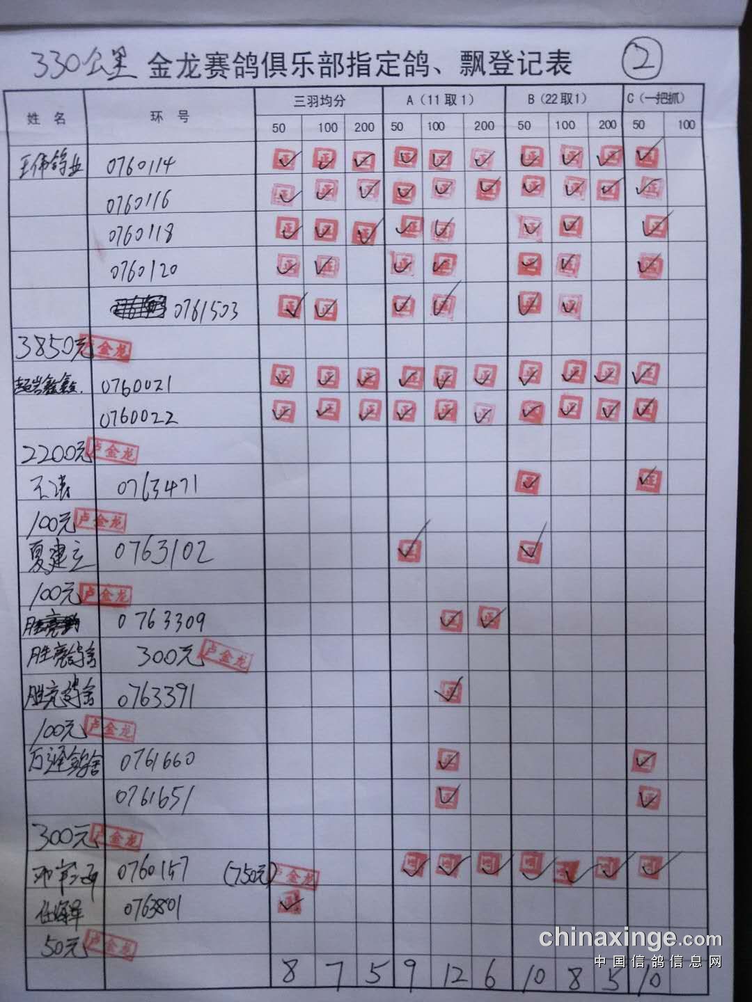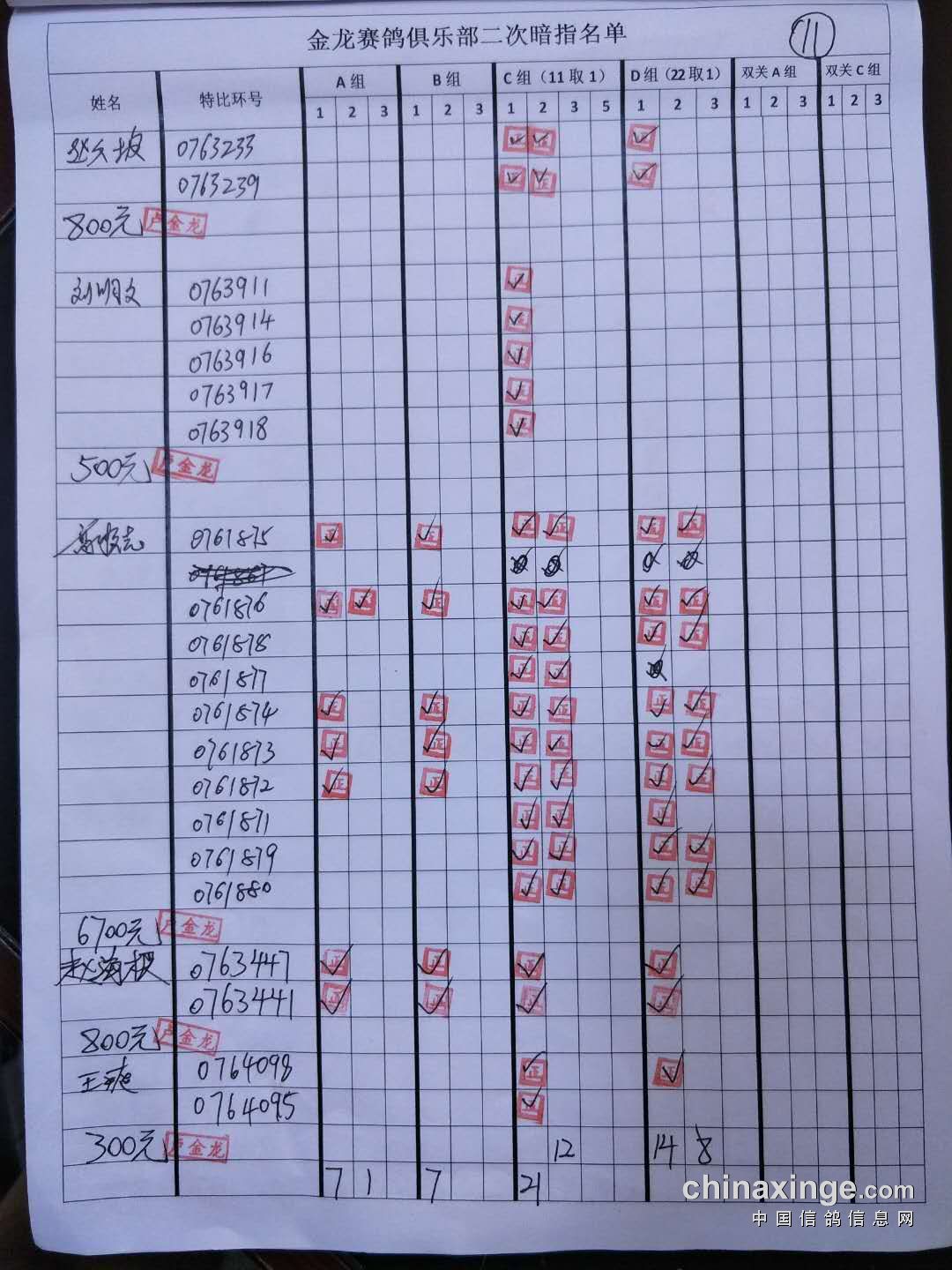 鸽舍赛绩