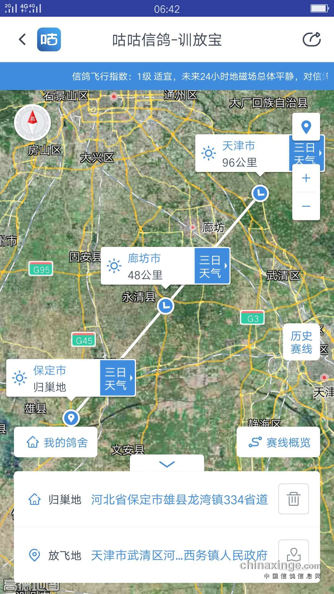 100公里雄县高速出口7:05准时开笼,天气晴,薄雾,今晚休息,明晚集鸽训放100公里改为120公里任丘…