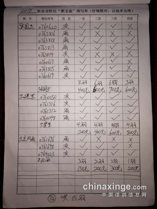 鸽舍赛绩