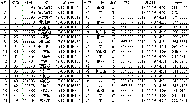 鸽舍赛绩