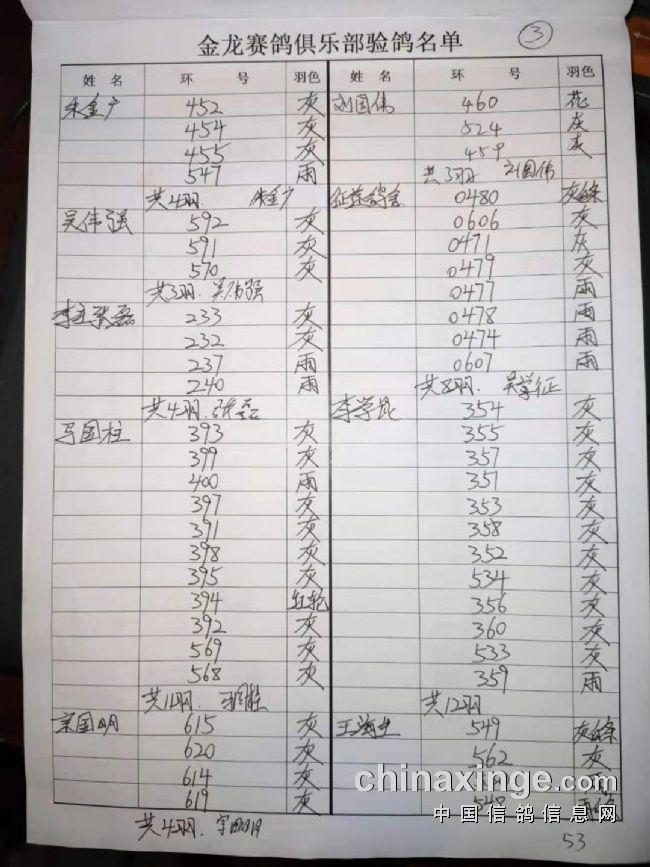 2021春季验鸽名单及有效羽数