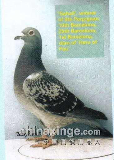 (图片:英国大名鸽“萨哈”号,先后夺得全英帕品那6名、巴塞罗那全英冠军、10名、29名,一生9次参加1000公里级别国际赛,21次成功飞越英吉利海峡,亨特父子培育)