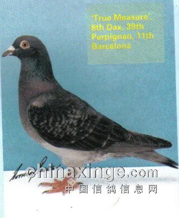 (图片:“真英雄”号,亨特父子培育,先后夺得全英达克斯8名、帕品那39名、巴塞罗那11名之优秀赛鸽)