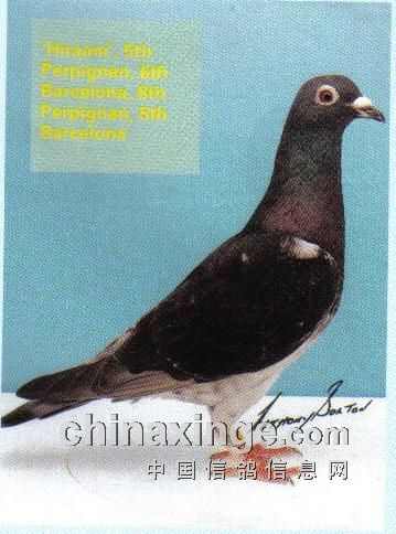 (图片:“希纳尼”号英雄赛鸽,亨特父子培育,16次穿越英吉利海峡,先后夺得帕品那5名、8名,巴塞罗那全英5名、6名)